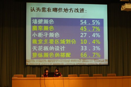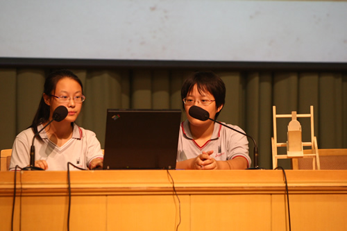 原高一9班的赵东平、苏明月同学汇报他们的课题成果