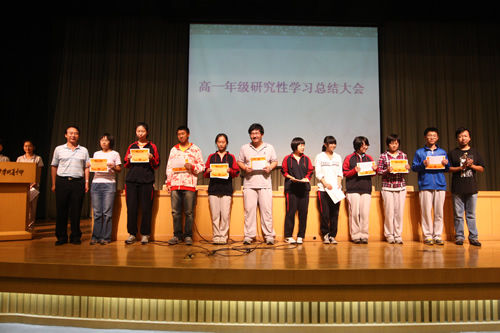 2010年9月17日,高二年级在礼堂召开了高一研究性学习总结大会。