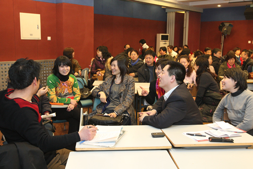 3月19日下午,别开生面的师长心理论坛在我校举行。初一年级百余位家长和年级的班主任老师分小组围坐成圈。大家首先在心理教师沈湘秦的组织下“热身”互动,介绍自己。沈湘秦老师围绕青春期孩子的需求和家长应注意的问题,带领大家在听、看、想的同时,还用“头脑风暴”、“我想知道谁和我一样”等互动活动加深大家的体验。接下的小组讨论更是异常热烈,家长们就隔代教育、如何对待孩子早恋、孩子在家发脾气怎么办等问题提出问题、交流经验、相互支招,老师们也不时地加入讨论,谈自己对所说问题的看法。论坛形式新颖、生动活泼,帮助家长更好地了解了学生的身心发展特征,有利于促进家校沟通、形成教育合力,为孩子的健康成长创造良好环境。