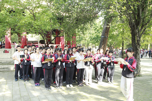 10日,在圣人故里曲阜,师生们怀着崇敬肃穆的心情踏上了三孔土地,聆听金声玉振,拜谒杏坛圣地,瞻仰棂星门,留连奎文阁,用心诵读《论语》,寻访圣贤遗迹,感受儒风儒韵;11日,伴着清凉的小雨,高一师生满怀激情,勇登五岳之首――泰山。雾锁云笼、盘山石阶挡不住同学们登顶的脚步。师生们欣赏了壮美的自然景观,感受了丰厚的文化底蕴,磨练了意志。