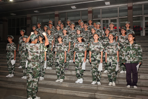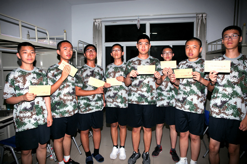 19日回京后,同学们又回到学校操场,参加军训恢复训练,并于22日完成了向家长和学校领导的军训汇报表演,向一直默默支持同学们的家长们展示了九天的军训的成果。汇报演出的最后,梁原草副校长讲话,他代表学校向给予军训活动大力支持的教官、老师和家长们表达感谢,希望同学们将在军营学到的军队的好品质、好作风在今后的学习生活中传承下去,为三年后接受祖国和人民的挑选做好充分准备。