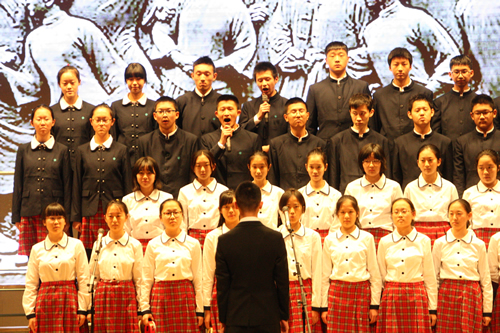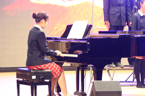我校高一同学在几周紧张准备中,回顾艰苦卓绝的抗日救亡历史,学习一二・九精神,积极排练,将使命与担当意识融进艺术之中。