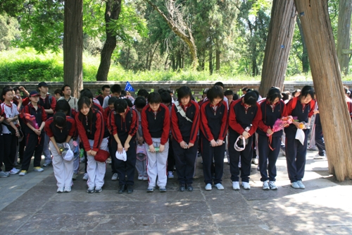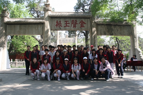 第一天学生们首先来到了曲阜。曲阜是中国儒家思想的发源地,历史文化名城之一,被誉为“东方圣城”,是伟大的思想家、教育家、政治家一一孔子的故乡。以曲阜“三孔”:孔庙、孔府、孔林为代表的古代建筑群集中体现了中国传统文化的色彩。虽说经过了一夜的旅途奔波,可穿梭在儒家历史的长河中,小憩于巨柏古松旁,再感受着空气中无处不在的儒家博大精深的文化精神,自有一份惬意与感慨――王朝兴衰,儒家依旧。