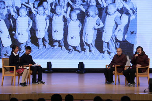 孟子云:“天下之本在国,国之本在家”。习总书记说:“家庭是社会的基本细胞,是人生的第一所学校。不论时代发生多大变化,不论生活格局发生多大变化,我们都要重视家庭建设,注重家庭、注重家教、注重家风”。家风影响着社会风气,关系着民族复兴。家风教育,也是我校全人格教育的重要组成部分。为弘扬红色家风,传承革命前辈艰苦朴素的精神,校团委和初二年级组联合举办了“对话青春:革命后代讲家风”活动。活动于12月10日在校百年礼堂举办,梁汉平(梁金生烈士之子)、刘松柏(井冈山红军刘型之女)夫妇应邀为大家讲述了他们爱党爱国、舍己为人、勤劳节俭、崇德向善的优良家风。活动由初二年级张一辰、刘明钊和王萧涵主持。校团委书记张明瑶、初二年级组组长白朝鲁、刘晓燕出席活动,初二年级组各班班主任和全体学生到场参加。