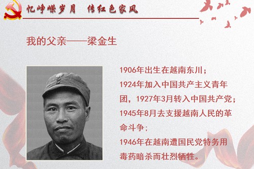 梁汉平的父亲梁金生,1927年加入共产党。抗战时,卖掉祖田,筹集款项,组织武装力量抗日。抗战胜利后被派往越南支援越南人民抗法,1946年在越南遭特务暗杀而牺牲。解放后,梁汉平的母亲拒绝政府发放的烈属补贴,坚守工作岗位。这种为国为民放弃一切、不计较任何个人得失的高尚品格,不正是我们提倡的爱国主义精神吗?