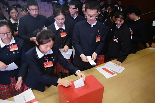 校团委副书记高二年级刘雨霏同学代表2018-2019学年度委员会向大会作工作报告,大会还梳理了由全校56个支部联合提交的共33份提案,为上一届团委干部颁发荣誉证书,并选举产生了新一届共青团优米软件下载方法委员会。