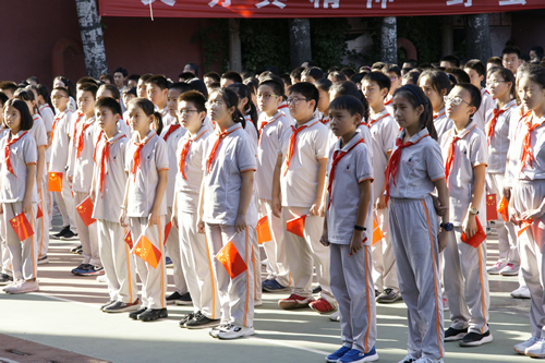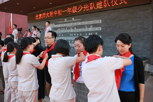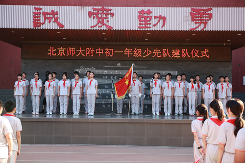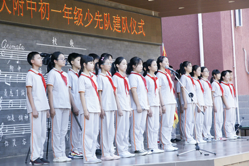建队仪式在全体少先队员们喊出的“与附中同成长,与祖国共命运。祝祖国繁荣昌盛!”的口号中圆满结束。