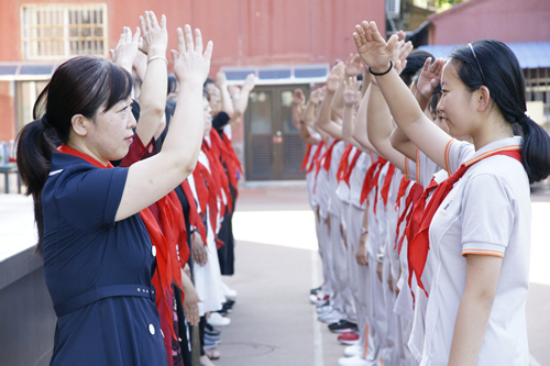 大队辅导员王海娜老师在讲话中告诉同学们,每一名附中人身上都肩负着传承红色基因的责任,更担负着与祖国共命运的责任。她希望少先队员们能在初一,这个从儿童走向真正少年的过渡阶段,从学习习惯到生活习惯再到理想信念,找好定位和前进的方向,努力让自己成为“四有”附中学子、成为能承担时代重任的先锋少年!