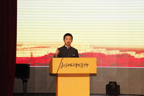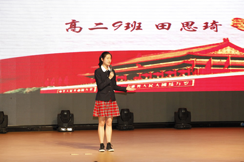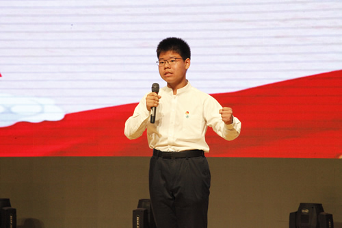 本场比赛的冠军,来自高二6支部的杜雨承同学在演讲的开始向同学们提出了一个非常有趣的问题,“如果可以穿越到1919到2019年之间的中国,你愿意回到哪一年?”,之后,他通过梳理百年来中国青年的奋斗历程,通过提出“到2018年,中国仍然有585个贫困县,仍然有697万留守儿童,他们的未来,又由谁来守护?”等挑战,最后给出了“我不需要穿越到过去以寻找机会,我想活在今天,活在2019年。我想将脉搏和心跳与这个波澜壮阔的时代紧密相连,我想亲手触摸那个曾经遥远的,中国梦。我也相信,我们每一个人,都将成为这个新时代的筑梦者和追梦人,我们将在奋斗中释放青春激情、追逐青春理想,以青春之我,奋斗之我,为民族复兴铺路架桥,为祖国建设,添砖加瓦。”的答案。