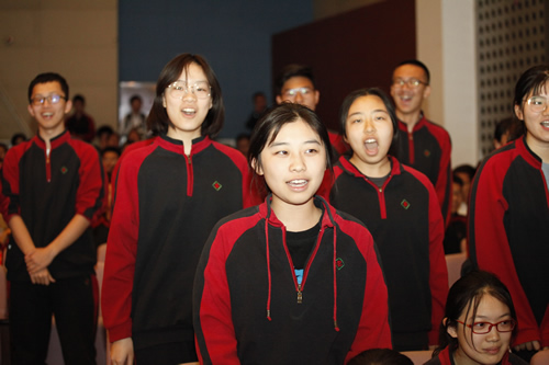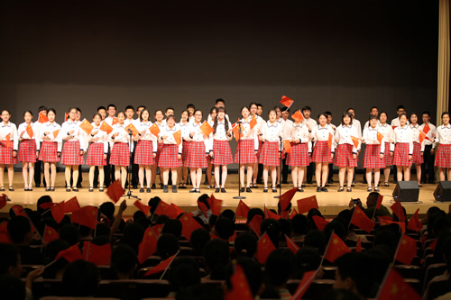 附中人合唱团的一首“我和我的祖国”的快闪将本场比赛推向高潮,全场师生手舞五星红旗,情绪高涨,齐声合唱,浓烈的爱国情怀和“我和祖国永不分割”的歌声久久回荡在优米体育总部地址电话会堂。