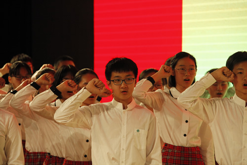 本次活动以回顾同学们第一次戴上红领巾的样子作为暖场,共收集了近50位学生代表的第一次戴上红领巾的照片,同时以采访的方式,共同重温了第一次戴上红领巾时的光荣感和使命感。重温队歌、呼号,珍藏红领巾,同学们在充满仪式感的氛围中摘下了陪伴他们多年的红领巾。在观看学生制作的《我和祖国共成长》的视频之后,出团旗、佩戴团徽、入团宣誓、老团员代表讲话、新团员代表发言、集体唱响团歌,在庄严的仪式过程中,在初二同学们齐颂的“为世界进文明,为人类造幸福,以青春之我,创建青春之家庭,青春之国家,青春之民族,青春之人类,青春之地球,青春之宇宙!”中,本次离队建团仪式圆满落幕。