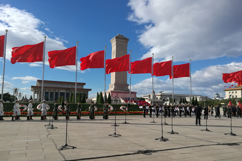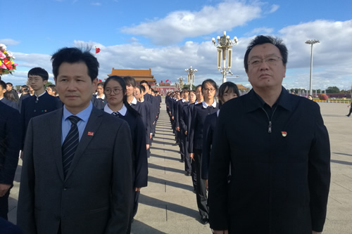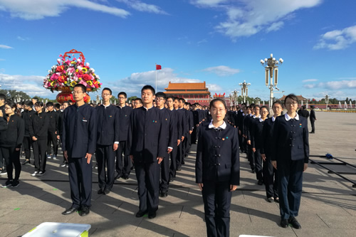 9月30日,首都北京秋高气爽,天安门广场庄严肃穆、红旗招展。这是我国第五个烈士纪念日,也是英雄烈士保护法施行后的第一个烈士纪念日。我校146名师生在校党总支许建勇书记和梁原草副校长带领下,作为首都中学代表参加了在天安门广场举行的“向人民英雄敬献花篮仪式”。