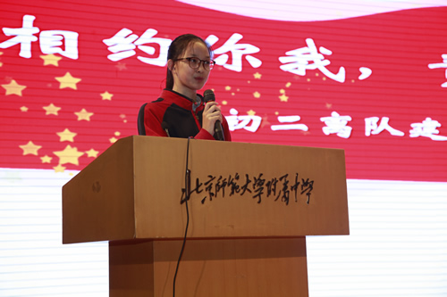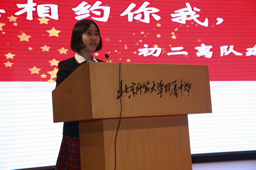 初二(6)班张子茉同学作为新团员说出了自己的入团感言,明确了自己即将肩负的重任。校团委王曼卿同学作为老团员讲述了自己和共青团的故事,表达了对初二小同学们的期盼,鼓励新团员们以身作则。