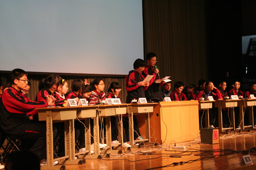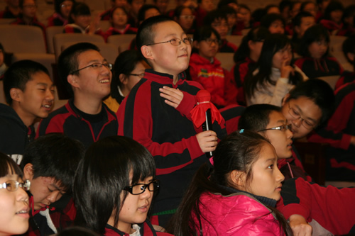 2011年12月5日、7日和8日,校团委组织高一、高二、初二共三个年级的同学分场次举行知识竞赛,纪念“一二・九”运动76周年,希望同学们铭记历史,传承和弘扬民族精神。
