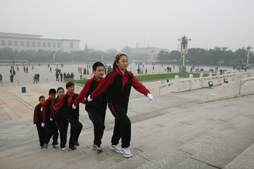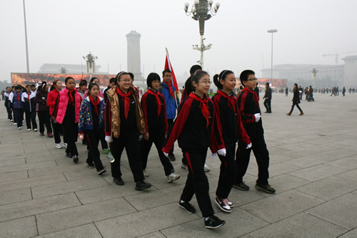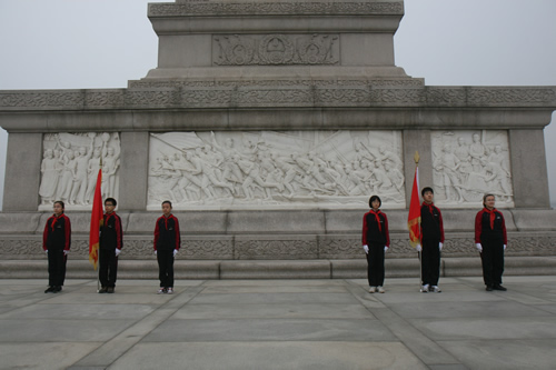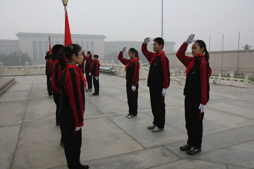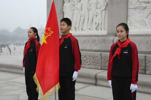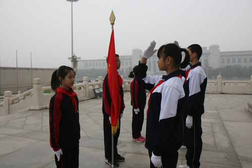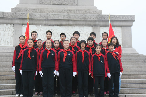 2011年10月31日,我校18名少先队员在校团委书记姚茜老师的带领下来到天安门广场人民英雄纪念碑前,与汇才中学12名少先队员一同站“首都少年先锋岗”。上午9点,站岗仪式开始。少先队员们身着统一的校服,佩戴鲜艳的红领巾,每次二组、每组三人,在人民英雄纪念碑北侧站少年先锋岗。站岗的队员动作规范,表情肃穆,换岗时动作统一,队列整齐,充分展示了我校学生的良好精神风貌。少先队员在站岗后,还参观了天安门城楼,接受“我爱北京天安门”主题教育。