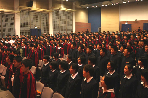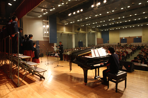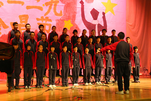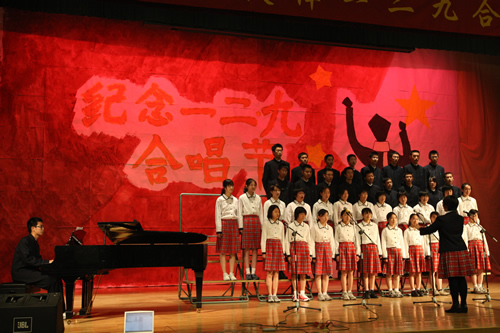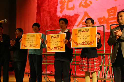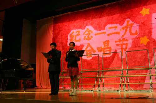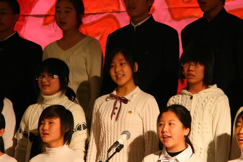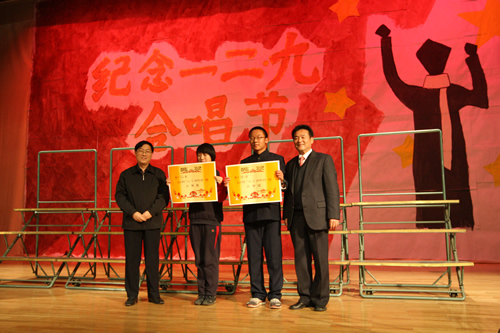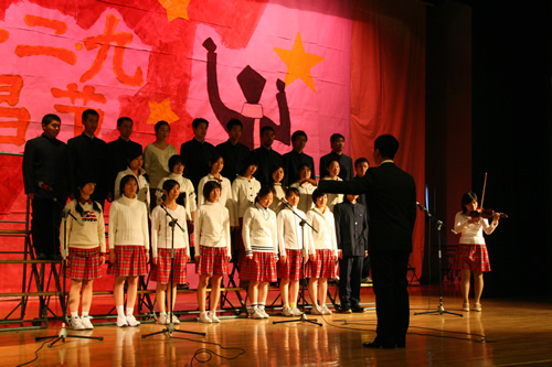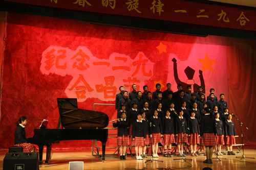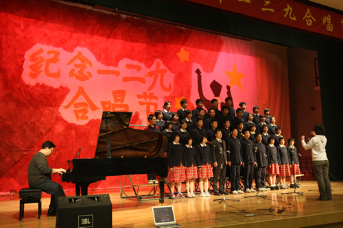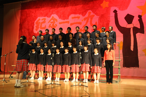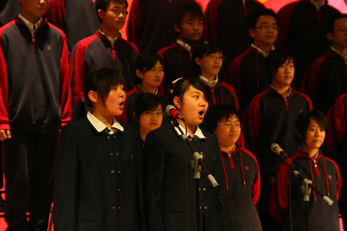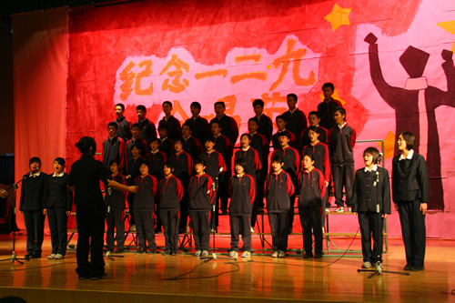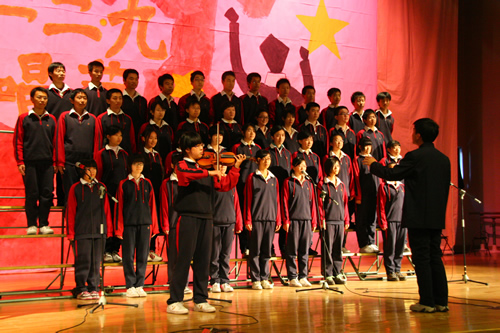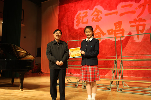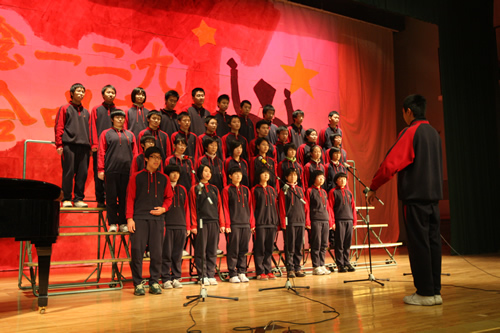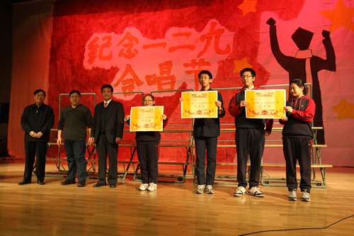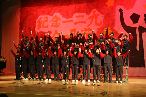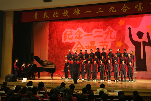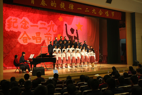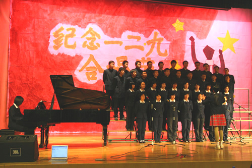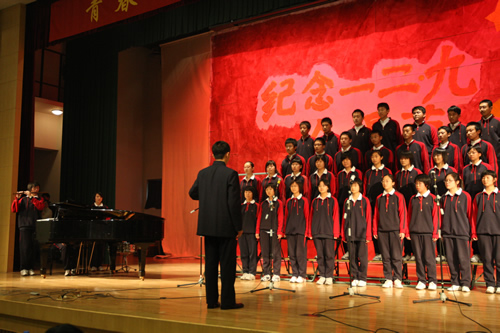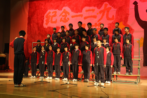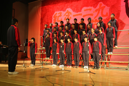 为纪念“一二 · 九”运动72周年,使学生了解历史,培养爱国主义情怀,增强历史责任感,我校高一、高二年级于12月10日、11日举办了“青春的旋律”一二 ·九合唱节。高一(3)班和高二(1)班分获年级组一等奖,李承子和吴天群同学分获高一、高二年级最佳指挥奖。