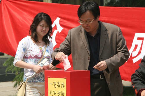 我校师生为地震灾区踊跃捐款