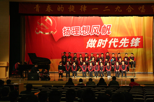 红色的大幕徐徐拉开,《青春舞曲》、《长城谣》、《送别》……这些耳熟能详的歌曲得到了同学们完美的诠释: