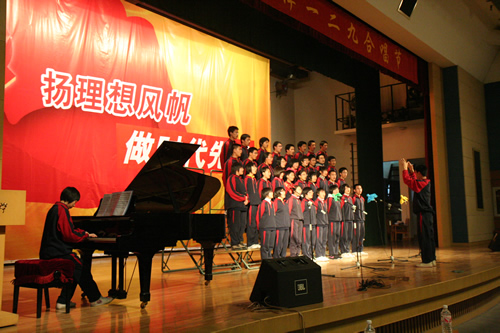 为纪念“一二・九”运动73周年,增强学生历史责任感,培养学生爱国主义情怀,高一年级于12月8日举办了“青春的旋律”优米软件下载方法第二届一二・九合唱节。