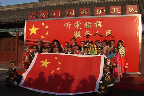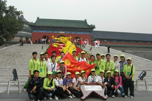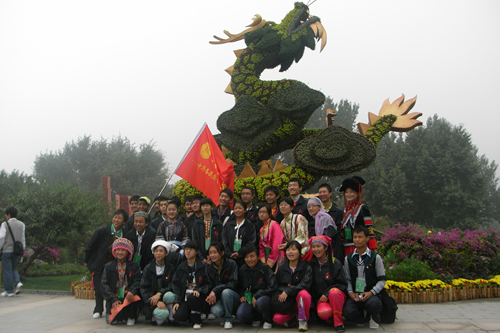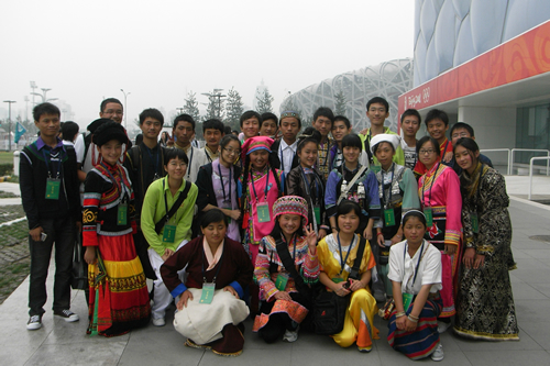 为庆祝新中国成立六十周年,共青团中央和首都国庆六十周年群众游行指挥部以“我爱我的祖国”为主题,邀请全国各族青少年欢聚北京,组成“中华各民族青少年同心营”,参与国庆庆典。我校高二(11)班李依晓同学经过层层选拔,成为全国汉族青少年代表,于2009年9月23日至10月3日,与京外55个少数民族的110名学生一起参加了为期11天的同心营活动。