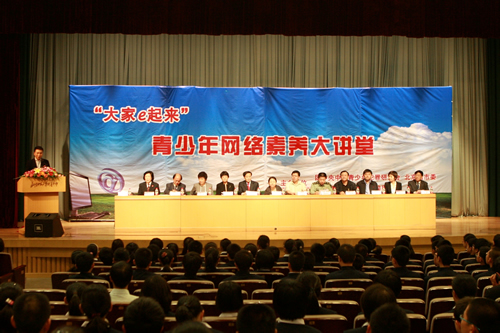 由《中国青年报》和中国青少年犯罪研究会、共青团北京市委、新浪网共同发起主办的“大家E起来――青少年网络素养大讲堂”开讲仪式及第一次讲座,于5月17日下午在我校百年会堂举行,初一、初二年级全体师生到场聆听。