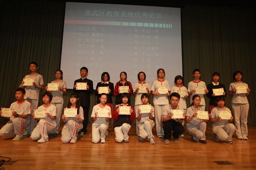 本学年,我校团委被评为宣武区五四红旗团委;高二(11)团支部安珊珊、高二(10)团支部冯子航同学被评为宣武区优秀团员,初二(2)、高一(1)等18个团支部被评为校、区教育系统优秀团支部,高二(4)团支部符若然等10位同学被评为宣武区教育系统优秀团干,初二(2)团支部任飞等131位同学获得校、区教育系统优秀团员。