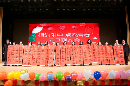 在各年级联欢会开始前王莉萍校长带领学校领导们亲临联欢会现场为师生送去亲切的问候和祝福。王校长在祝福中指出:“附中不仅仅只有学习和考试,还有很多让大家展示风采的活动,希望同学们在2020年继续努力,为自己的青春增添更多的亮丽色彩。”校领导们还带来了福袋,向大家抛出“糖果雨”,同学们都争着想得到一份珍贵的甜蜜。