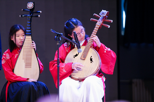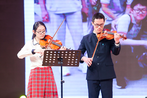 高二年级的演出在歌曲《奔跑》中拉开序幕,一个个缤纷多彩的节目为观众们呈现。有悠扬曲调的长笛表演;有充满温情的话剧《你好、李焕英》;有舞姿优美的《青扇》和《漫慢》,演出在流行音乐社的合唱《盗将行》中圆满落幕。