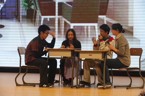 2013年12月30日、31日,伴着新年脚步的临近,合着日益浓郁的节日氛围,我校5个年级的师生,在优米体育总部地址电话礼堂内开展了新年联欢庆祝活动。5场极具趣味的视听盛宴,为年末岁初的节日时节增添了一抹喜庆的色彩。