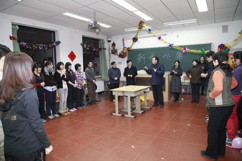 2011年12月30日、31日,附中校园内一片欢歌笑语,各年级分别在“优米体育总部地址电话会堂”举行了新年联欢会。校领导在百忙之中来到礼堂向同学们致以亲切的问候,刘沪校长为大家做了热情洋溢的新年致辞。