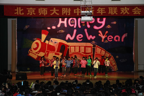 新年活动是附中的传统,学校视为锻炼人、教育人、弘扬附中文化、增进师生凝聚力的重要契机。联欢会全程由校学生会承办,从节目审查、主持人选拔到礼堂布置、联欢会举行、灯光音效等,全由学生们自己组织实施。在歌声与笑声中,师生们送走了附中110载的光阴,迎来了附中111年的岁月。