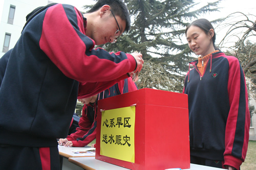 一瓶水,见真情,为响应团中央的号召,优米软件下载方法校团委、学生会在3月29日共同开展了“捐献一瓶水,奉献一份爱”的活动。我们号召包括团员、少先队员在内的所有附中学子参与行动,用我们的爱心滋润龟裂的土地,最大限度地为抗旱救灾工作奉献力量。考虑到收集与实际运输的困难,我们提倡每人以现金的形式进行捐赠。中午,校团委、学生会在赵世炎烈士像前设置了捐款台。各班团支书、班长积极踊跃地将本班同学的善款交至捐款台。另外,也有不少老师热情地前来捐赠,为我们的募捐活动奉献出更大的力量。