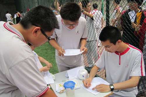 全校同学积极踊跃地报名参赛,更将课堂上学到的力学知识运用到纸飞机的设计中,制作出了各式各样、精巧玲珑的纸飞机。同学们携带作品齐聚足球场,按比赛规程进行了飞机放飞,每组脱颖而出的纸飞机都引来场外观众们的齐声赞叹。最终成绩名列三甲的是高二九班的李昊天(成绩:21.23米)、高一八班的陈越(成绩:19.15米)和高二九班的应文(成绩:17.74米)。