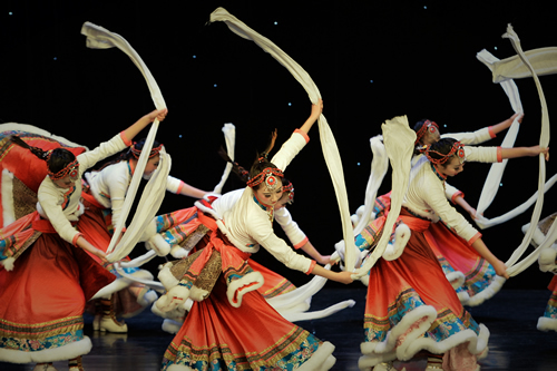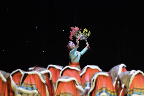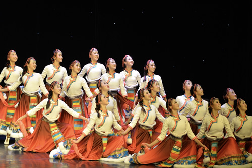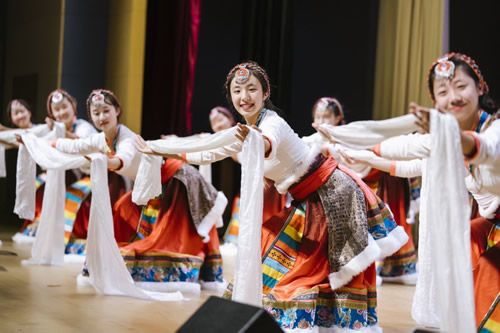 《心中的歌》一舞表现了藏族人民庆祝新中国成立70周年的场景:眼望着天安门国旗冉冉升起时的激动;围着篝火载歌载舞的喜悦;向新中国生日敬献哈达时的虔敬。70周年,举国欢庆,这支舞也表达了每个附中人对祖国的深切热爱与祝福!