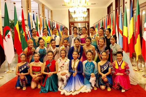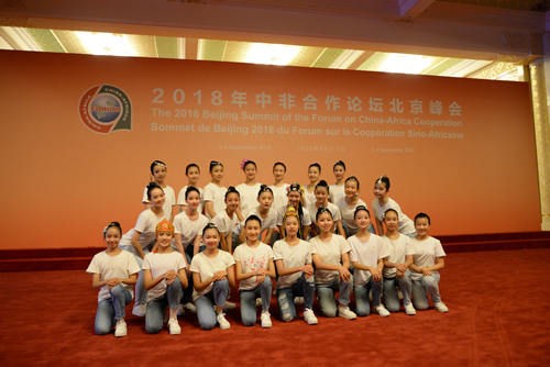 当日,天安门广场被鲜花装点,中非合作论坛成员国国旗、非洲联盟会旗和印有中非合作论坛会徽的旗帜迎风飘扬。人民大会堂灯火通明,欢乐祥和,在通往宴会厅沿途,我校舞蹈团同学身着民族服饰,载歌载舞,以最热情的舞蹈迎接峰会领导人,欢迎远道而来的贵宾。