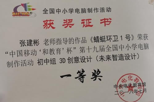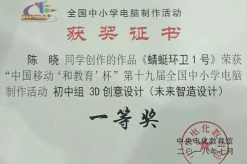 第十九届全国中小学电脑制作活动夏令营于2018年7月16日-21日在江苏无锡市举行。我校初一年级陈晓同学通过区级、市级选拔,晋级全国现场测试和专家答辩,最终获得全国一等奖。高二年级景文萱同学、乔清禹同学分别获得全国三等奖。